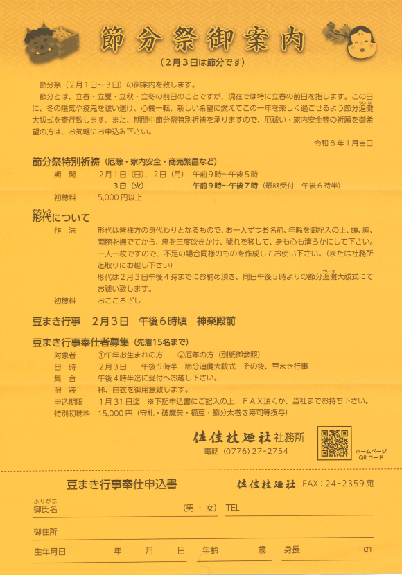 - 申込: 1月31日までにFAXまたは社務所へ直接お持ちください。